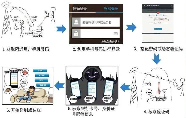在公眾的印象中,“隔空取物”一般出現(xiàn)在魔術(shù)表演節(jié)目或仙俠小說的橋段中。其實,此類無觸式隔空盜刷現(xiàn)身于世的時間并不長,屬于新型電信詐騙案件,其工作原理說起來也并不復(fù)雜。我們?nèi)粘J褂玫脑S多App登錄及操作,都可以通過手機號碼加短信驗證碼的方式實現(xiàn),而手機號碼和短信內(nèi)容可以通過專用電子設(shè)備來獲取。即,作案人員首先使用偵碼設(shè)備獲取一定范圍內(nèi)用戶的手機號碼和短信內(nèi)容,然后利用獲取的手機號登錄支付平臺,再用嗅探設(shè)備獲取手機驗證碼,最后登錄平臺操控用戶資金賬戶進(jìn)行轉(zhuǎn)賬或消費。